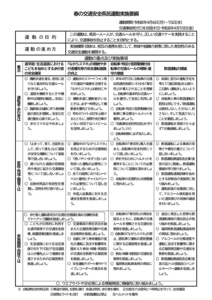 春の交通安全県民運動が、令和8年4月6日〜15日に実施されます。
