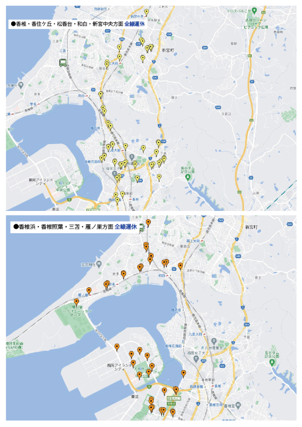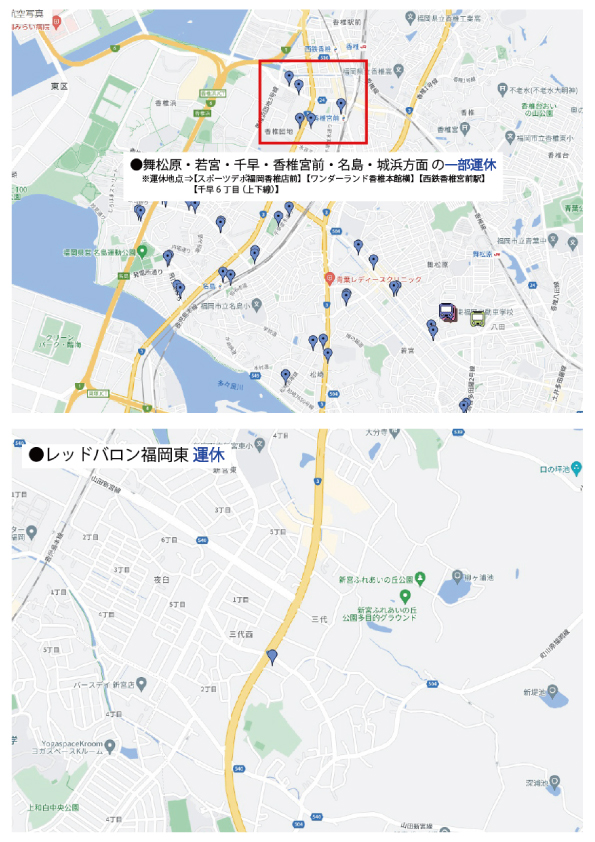 ※運休地点:スポーツデポ福岡香椎店前/ワンダーランド香椎本館横/西鉄香椎宮前駅 ほか